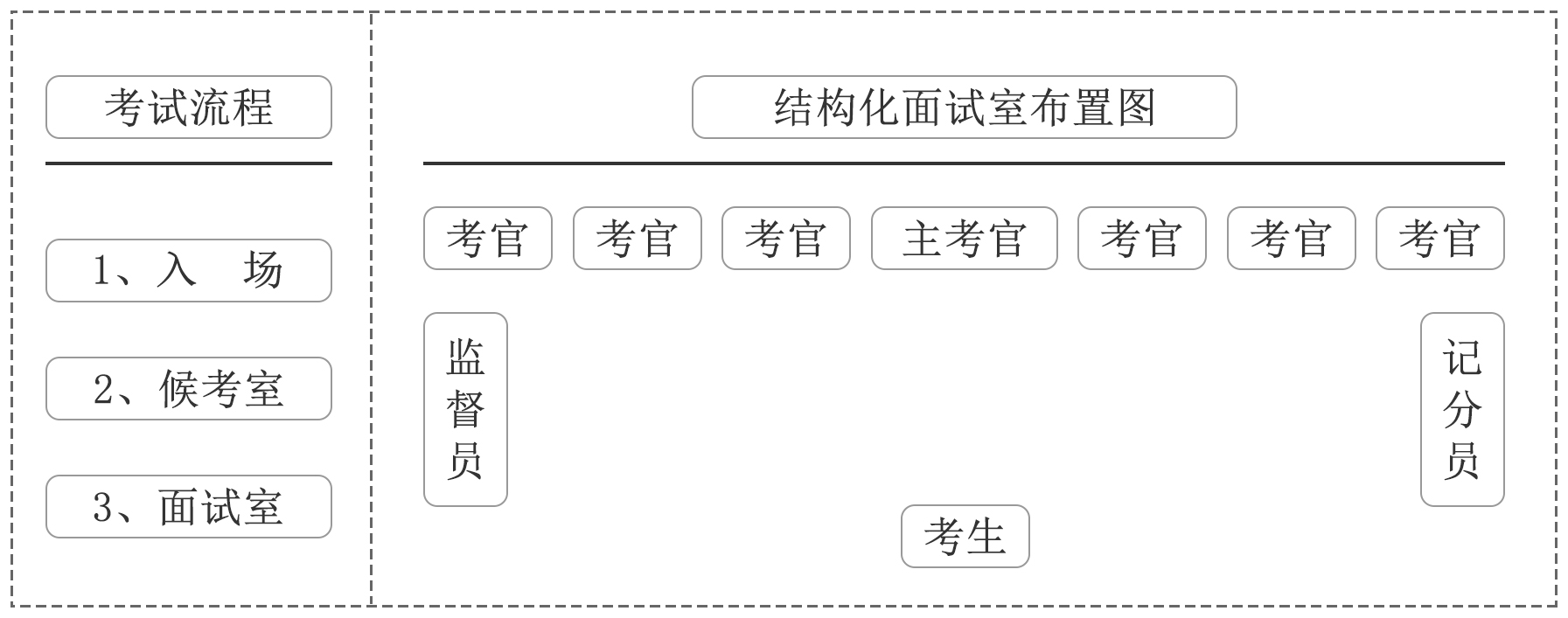 (1)全市各面試考場(chǎng)根據(jù)考生人數(shù)分別設(shè)置若干個(gè)面試組,每個(gè)面試組統(tǒng)一由7名考官組成。其中,主考1人,考官6人。主考和考官均于面試前通過(guò)分類抽簽確定分組。面試組不設(shè)用人單位考官。