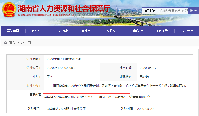 重磅消息:2020年湖南公務員考試筆試時間預計8月舉行,招考公告將于近期發(fā)布!速看: