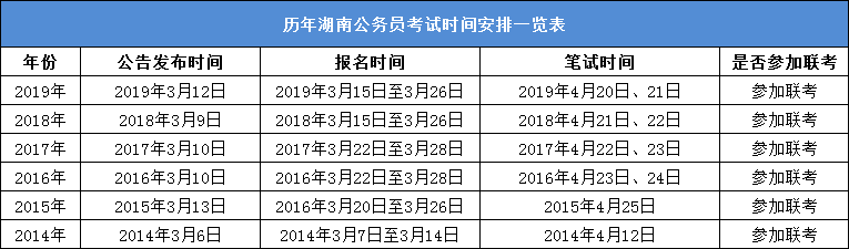 下附歷年湖南公務員考試時間安排: