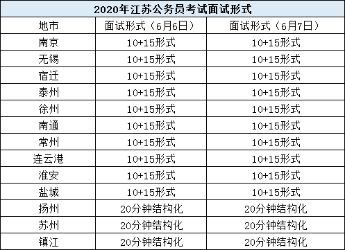 今年采用10+15模式的面試形式比較多,只有揚州、蘇州、鎮(zhèn)江采用的是20分鐘結(jié)構(gòu)化的形式(如下圖):