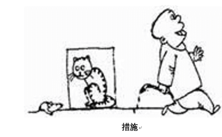 4、漫畫題:地上有一只老鼠,有一個(gè)人在墻上畫了一只貓,旁邊寫著“措施”,然后這個(gè)人就走了。談?wù)勀愕目捶ā?/span>