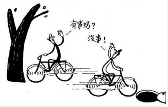 1、漫畫題:(兩個(gè)相反方向騎自行車的人,而且都飛快,然后一個(gè)人回頭問(wèn)有事沒(méi),另一個(gè)人回答沒(méi)事,結(jié)果一方前邊兒是一棵樹,另一方前面是一口井。)請(qǐng)給漫畫起兩個(gè)標(biāo)題,并就其中一個(gè)結(jié)合社會(huì)現(xiàn)象談一談。
