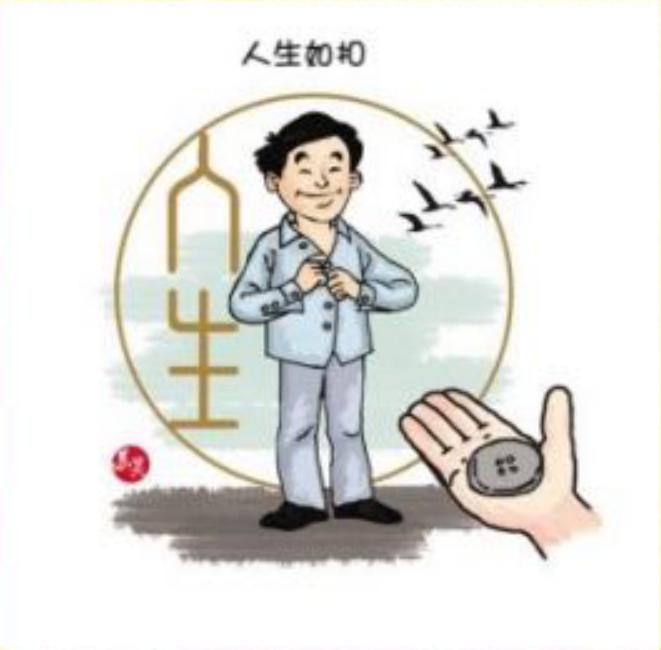 4、漫畫題:一個人衣服上的扣子,扣子是錯開的。漫畫標題是人生如扣,談談這個漫畫對你的啟示。