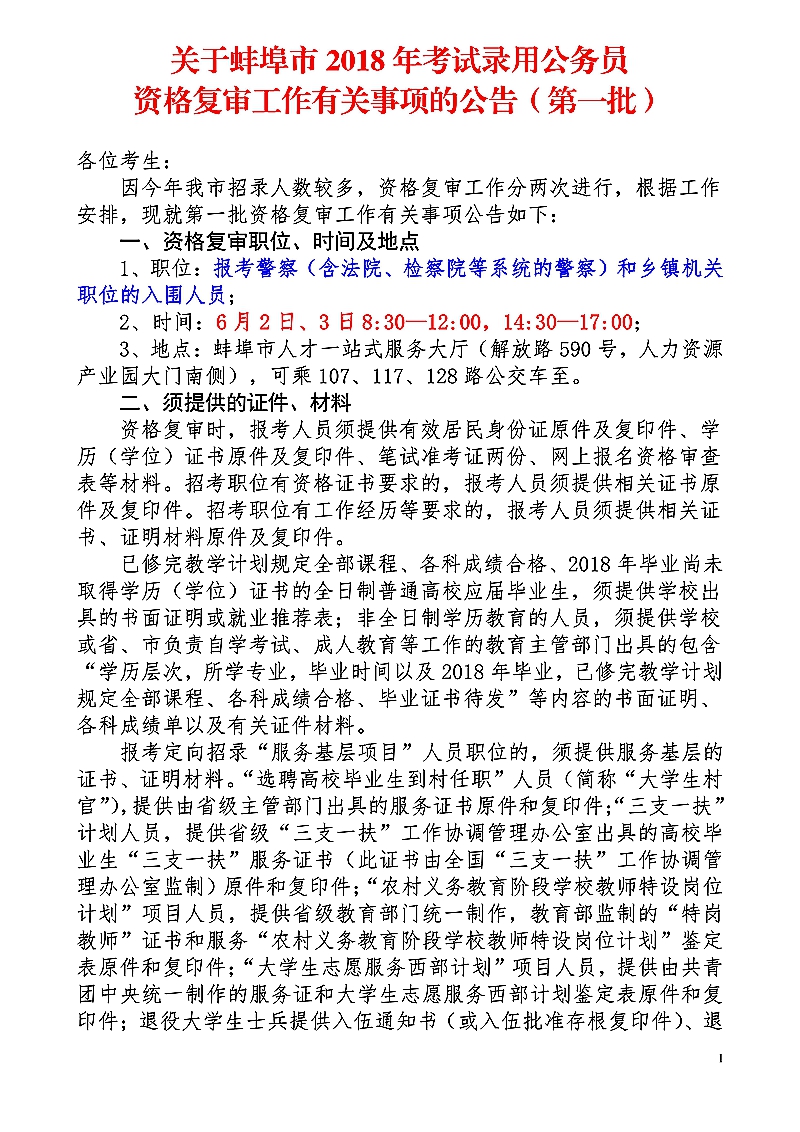 2、非鄉(xiāng)鎮(zhèn)職位(含公安特殊技能職位)的資格復(fù)審時(shí)間定于6月5日(周二),上午:8:00—12:00,下午: