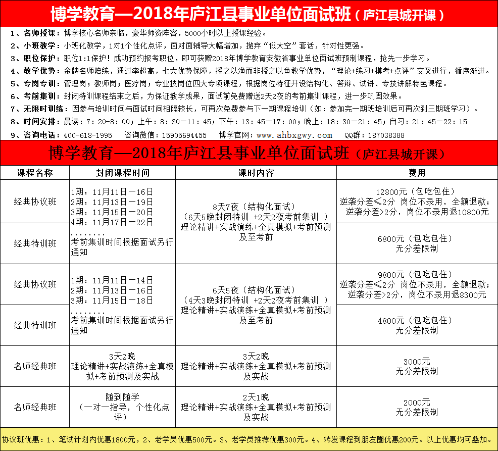 博學(xué)教育2018年合肥市廬江縣事業(yè)單位面試班課程安排