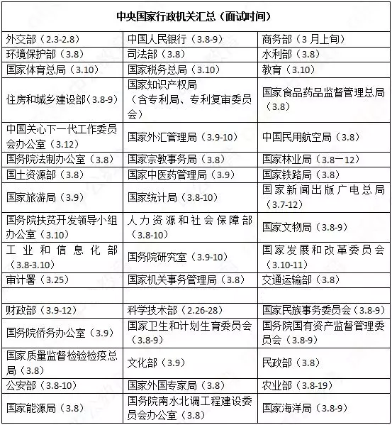 從上表可以看出,國考安徽的崗位面試時間集中在3月份,外交部面試時間為2月份,今年2月初是新年,受此影響,即使今年比去年筆試時間更早,但預(yù)計面試時間預(yù)計和去年差不多。