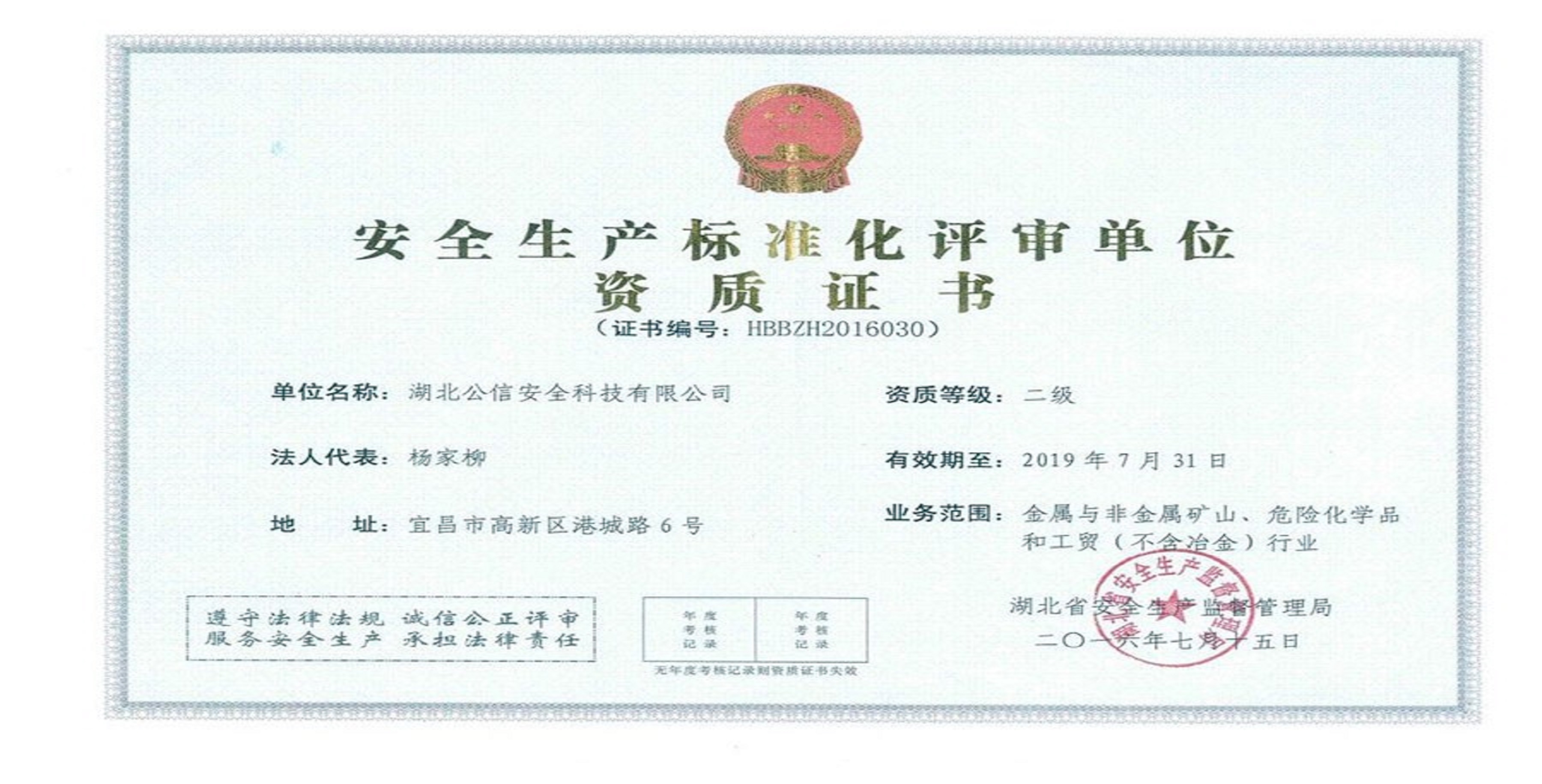 資質(zhì)名稱:安全生產(chǎn)標準化評審單位資質(zhì)證書